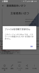 こちらで調べたところ、Android版のOneDriveやMicroSoft365のアプリでパスワード付きPDFの印刷ができない事象があるようです。